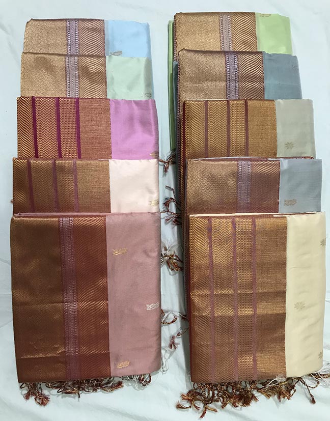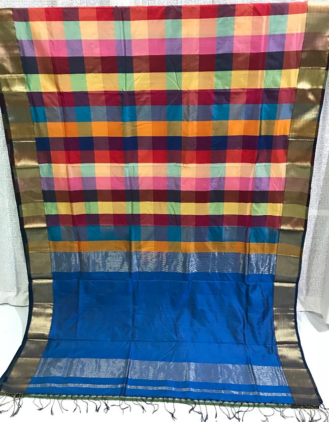 Kota Doria is woven on a traditional pit loom in such a fashion that it produces square checks pattern on the fabric. They smear onion juice and rice paste with a lot of care into making the yarn so strong that no additional finishing is needed. The weaving is done using pure cotton threads, but the style is so varying that it makes the final cloth translucent and gives it a cross pattern. They are very fine weaves and weigh very less. This is the most open weave fabric woven in India.